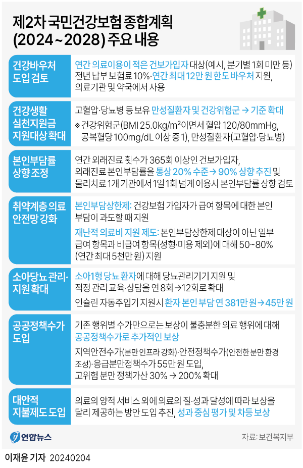 올해 2월 4일, 보건복지부는 이런 내용이 담긴 '제2차 국민건강보험 종합계획 (2024~2028년)'을 발표하며,