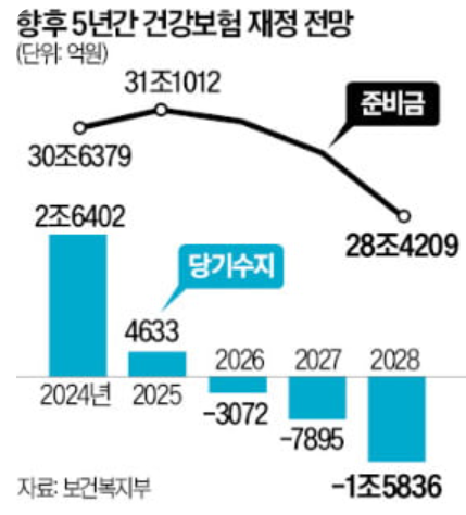 위와 같은 정책을 내면서 동시에 보건복지부는 건보 재정이 2년 뒤인 2026년에 적자로 돌아설 것이란 전망도 내놨어요.