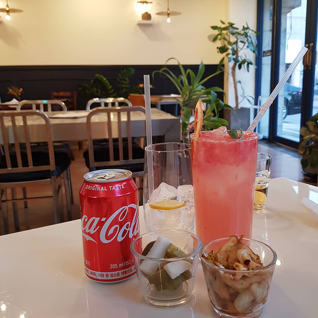 음료는 자몽에이드와 콜라 시켰고요.