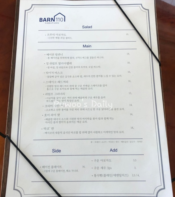 심플한 메뉴판.