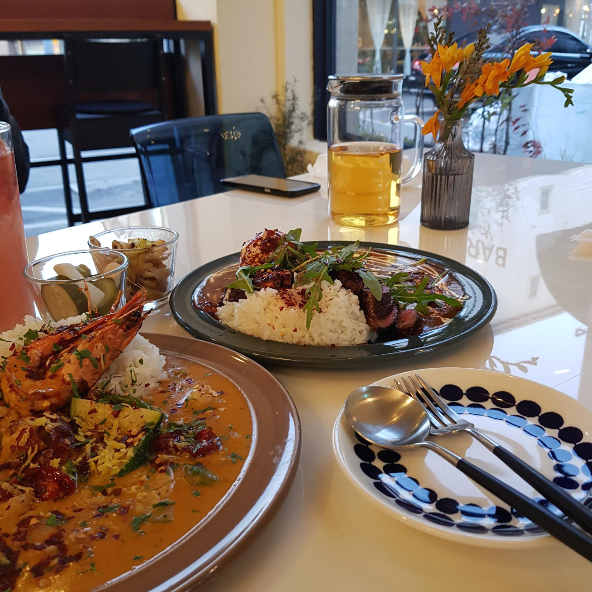 전체적으로 인테리어, 테이블 간 넓은 간격, 세련된 플레이팅, 특색 있는 커리맛 모두 맘에 들었어요.