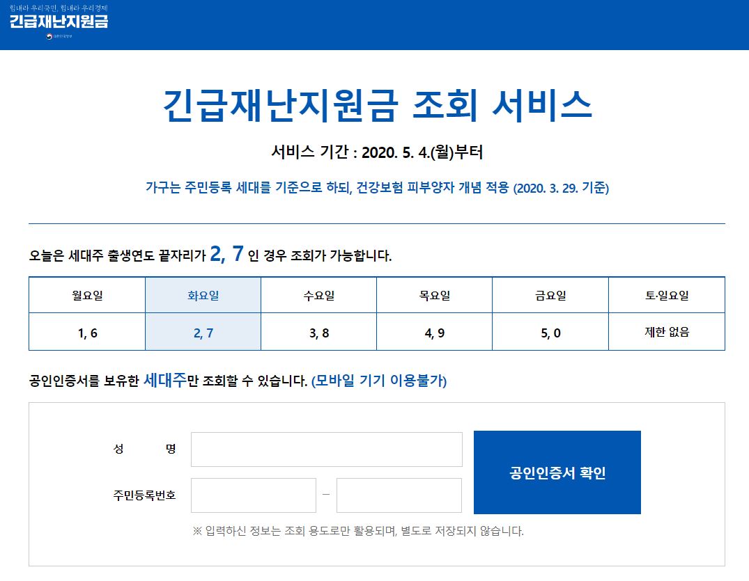5/4(월)부터 긴급재난지원금.kr 사이트에서
