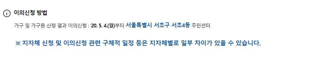 우선 가구 및 가구원 산정 결과가 이상하면 바로 주민센터에 이의신청하시면 됩니다.