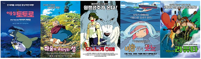 2. 지브리 시리즈 (이웃집토토로, 하울의 움직이는 성, 모노노케 히메, 센과 치히로의 행방불명 등)