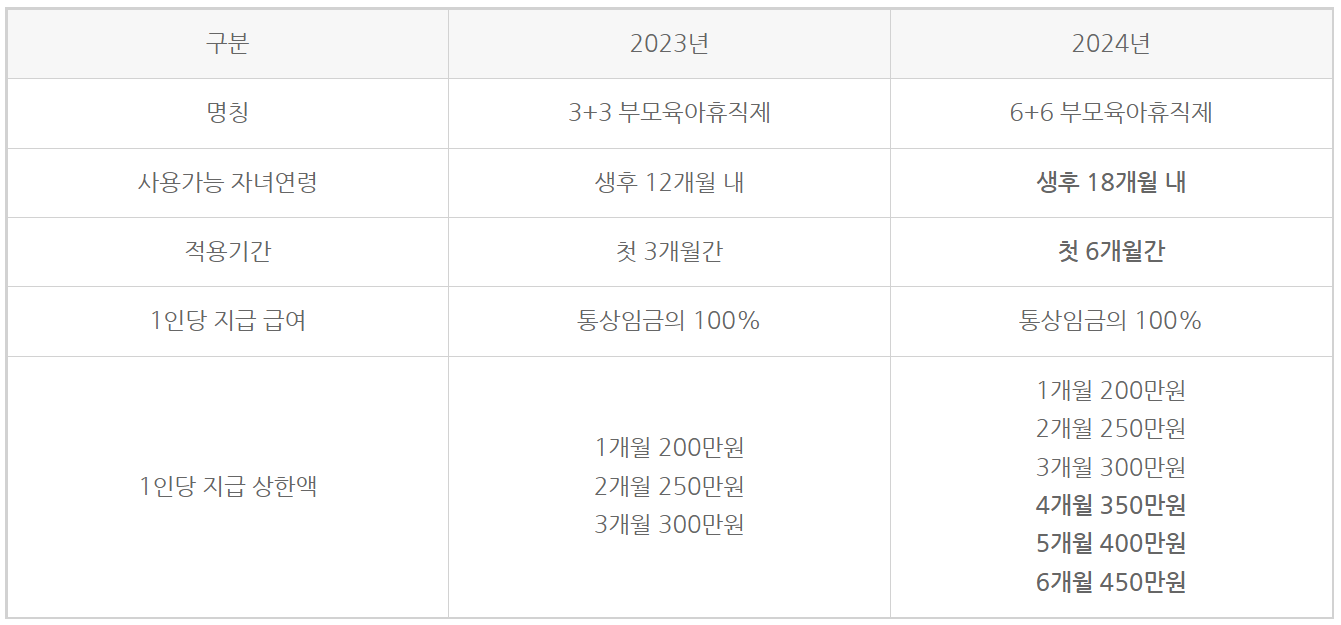 6+6 부모육아휴직제 시행 (※ 시행일: 2024년 1월 1일)
