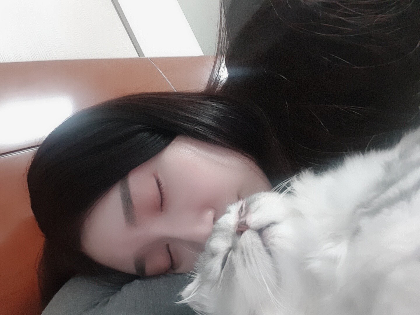 구름이가 어릴 때는 종종 침대에 올라와 저랑 함께 자곤 했어요^^